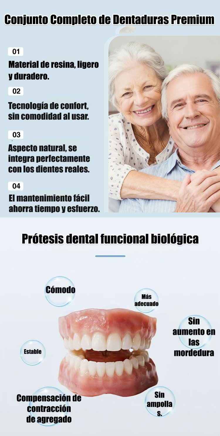 Dentadura funcional con tecnología estadounidense y ajuste seguro y adaptable
